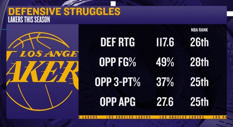 Kaiyun网页版-四处漏风!媒体总结湖人本赛季多项防守数据均位列联盟末流