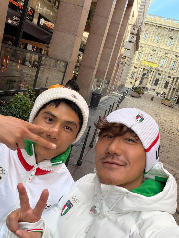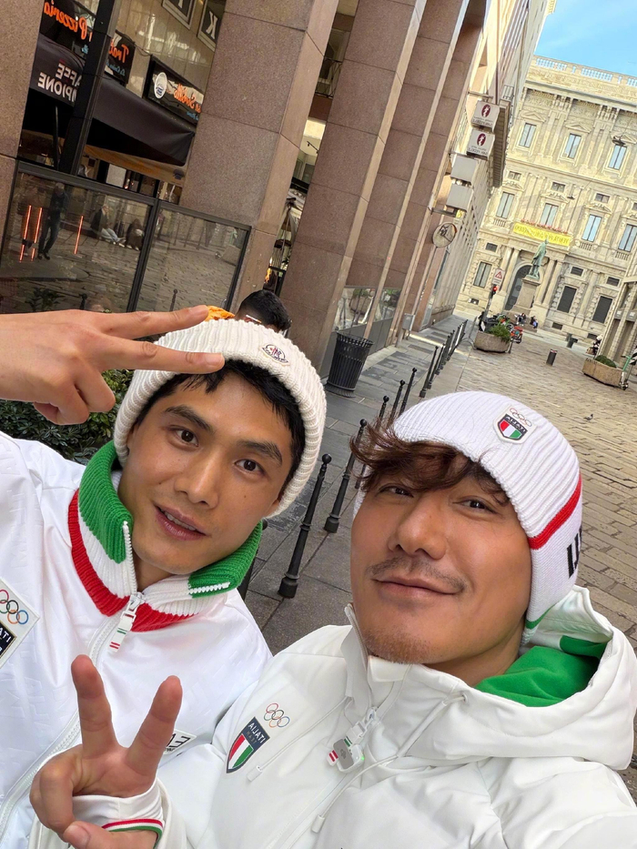 @胡兵 更新社媒晒照:米兰冬奥会,中国冰墩墩来了[yeah][yeah]我和郝允祥一起为中国队加油